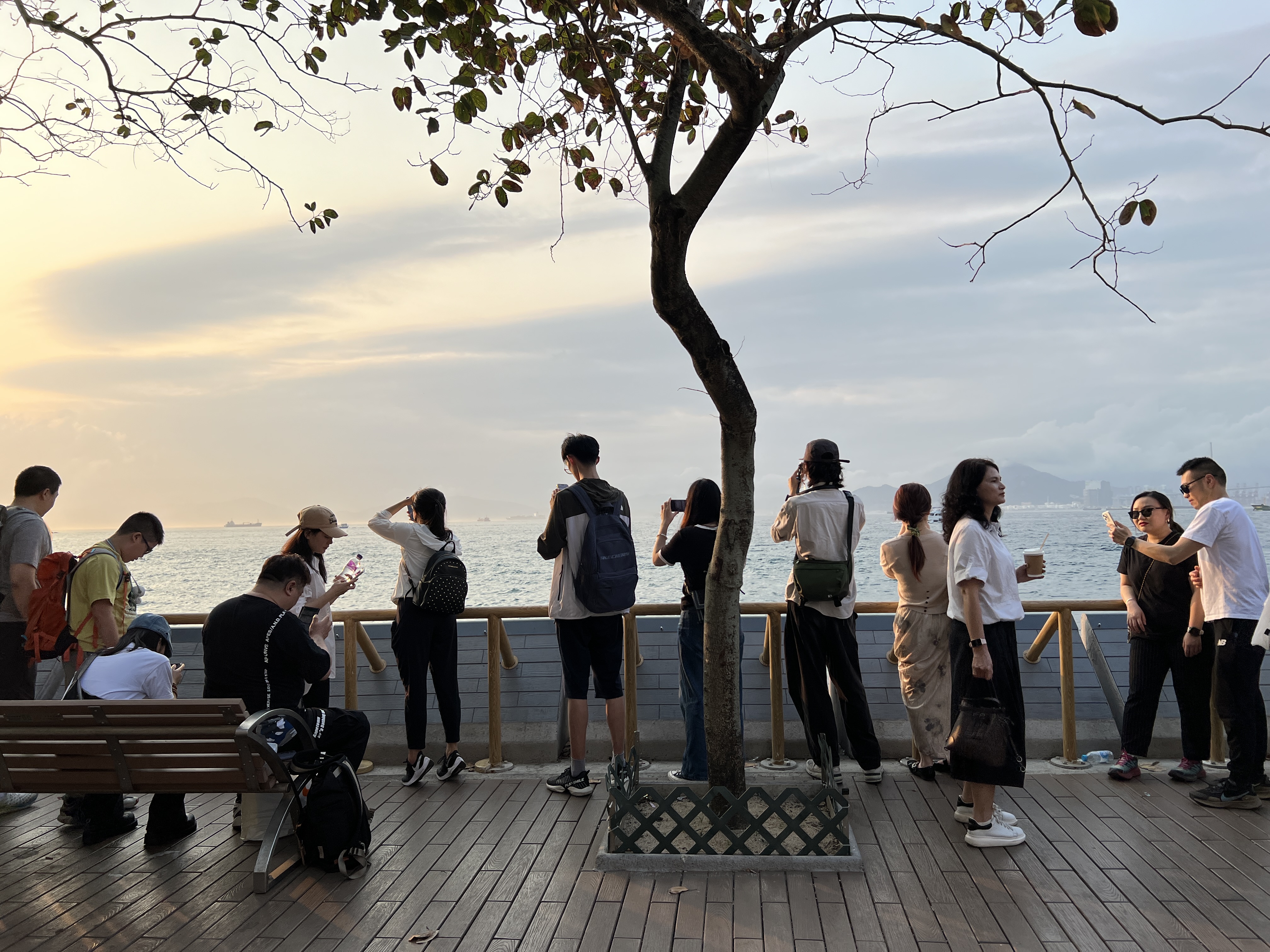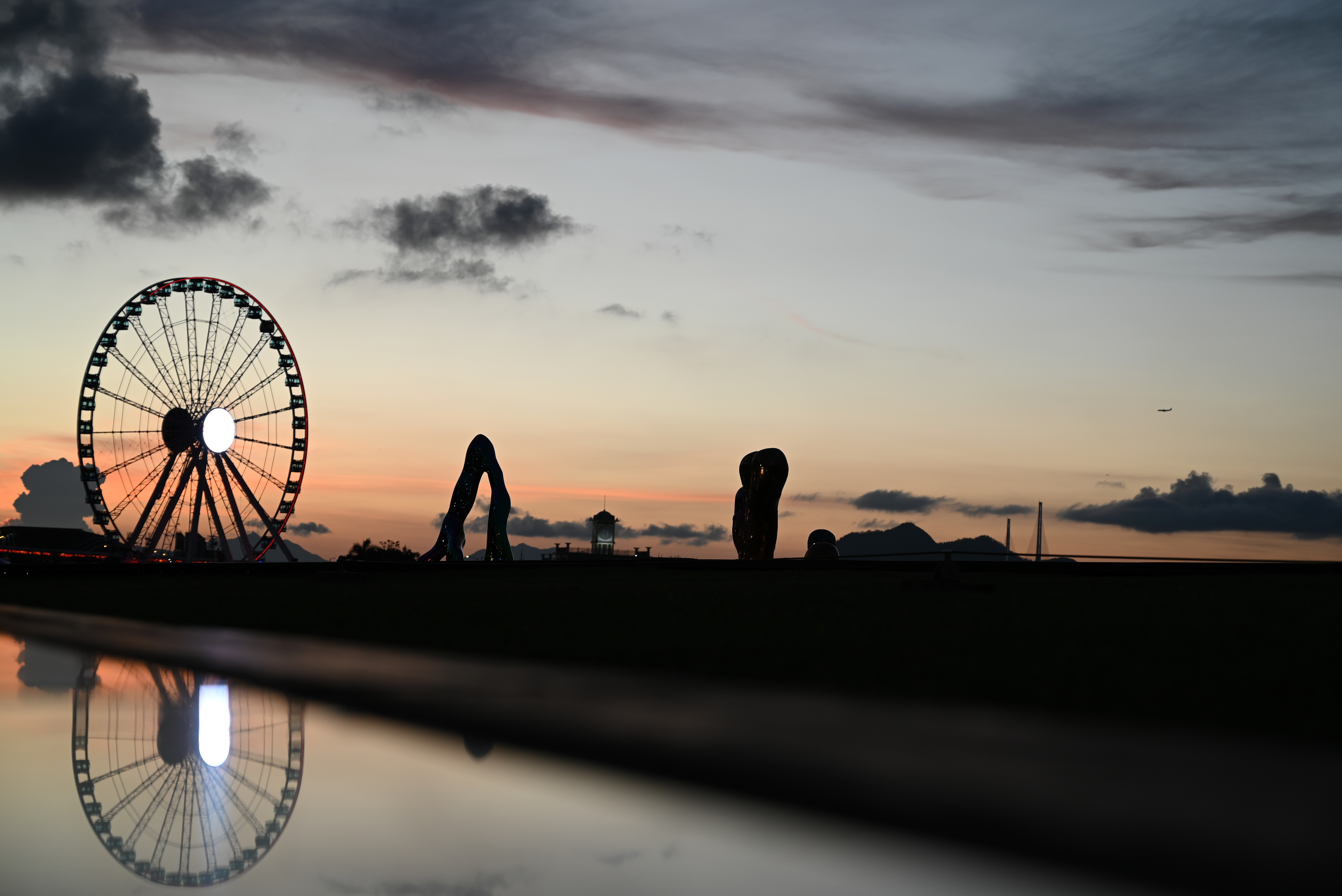 维港摩天轮, 当时把相机放在了石栏上拍的,竟然有好看的倒影